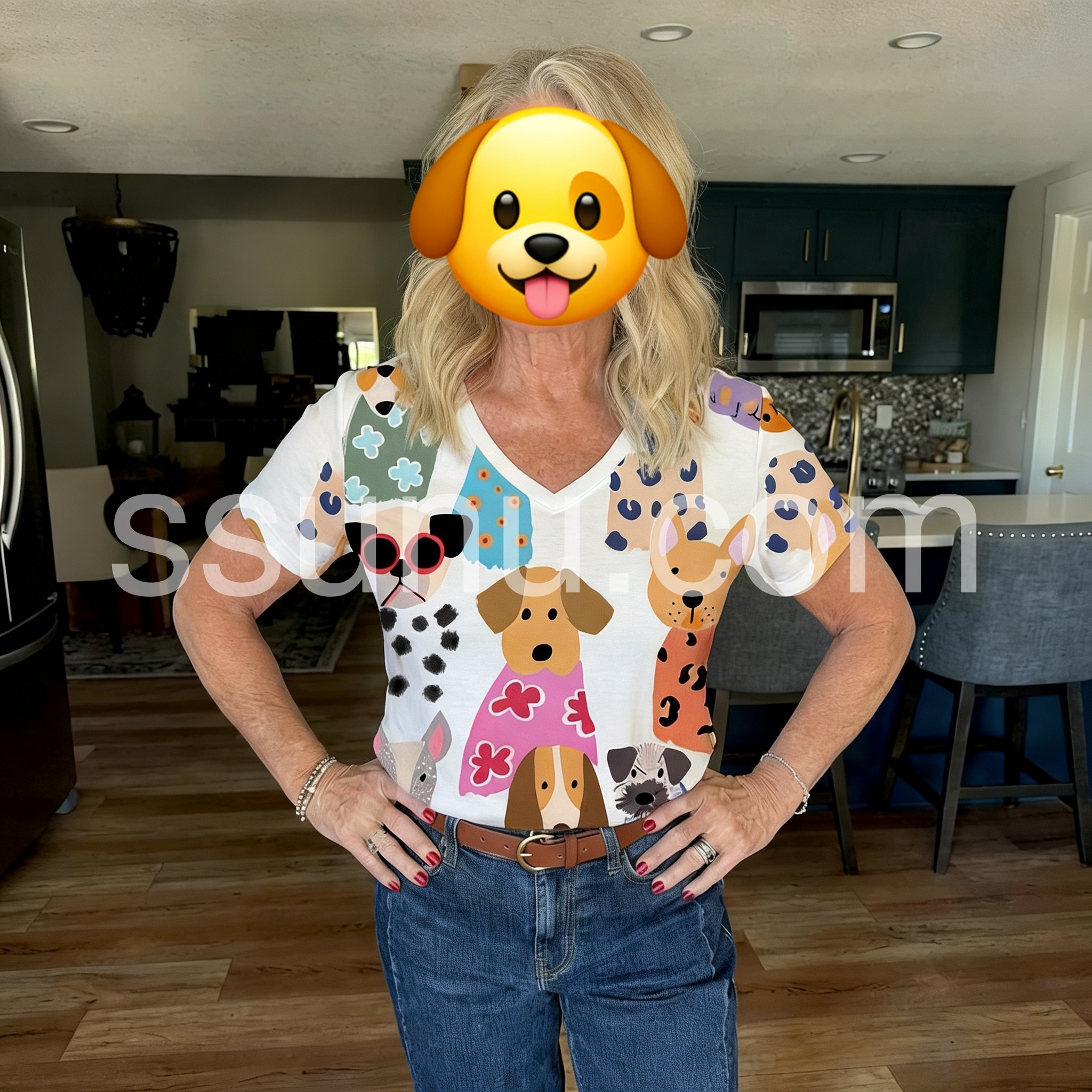 Style# 1544301Brighten your day with this Whimsical Dog Print Short Sleeve Top, a cheerful and eye-catching piece that turns heads with its playful, hand-drawn style canine illustrations. Featuring an adorable array of cartoon dogs in vibrant outfits—complete with sunglasses, floral dresses, and bold patterns—this top brings a joyful, artistic flair to any outfit. Crafted from lightweight, breathable fabric—likely cotton or linen blend—it’s perfect for warm weather and casual wear. The relaxed fit, short sleeves, and soft V-neckline offer ultimate comfort and effortless style, making it ideal for beach days, brunches, or weekend outings. Whether you're a dog lover or simply adore fun fashion, this top is a must-have statement piece that blends humor, creativity, and charm. Pair it with white jeans, denim shorts, or flowy pants for a look that's both flirty and full of personality. Inspired by the whimsical spirit of brands like Lulus, this top celebrates individuality and lighthearted fashion—perfect for those who love to express their fun side with every step.