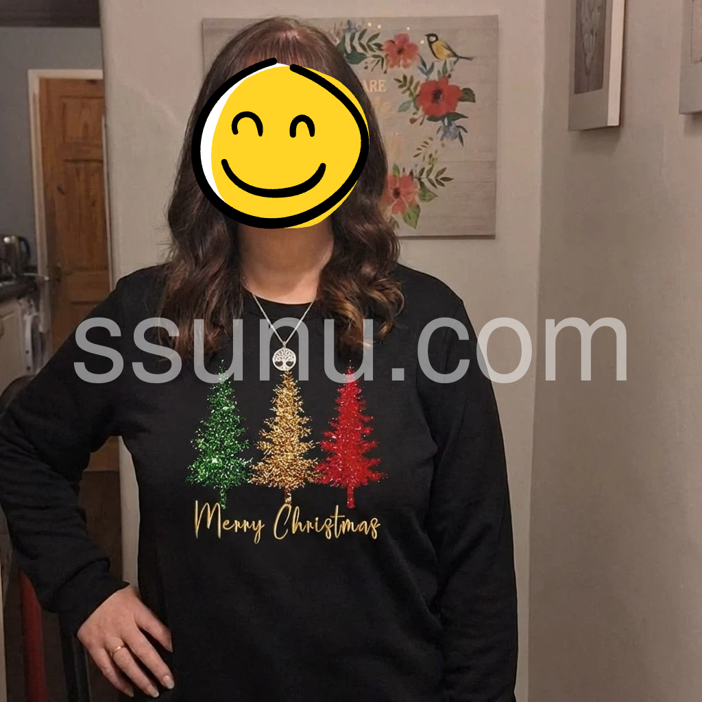 I wanted something cozy and cute for the holidays, and this sweatshirt nailed it. The black base makes the colorful tree lights stand out perfectly, and the design looks cheerful rather than dull. When I tried it on, it felt comfortable right away, and the sleeves are a great length for layering. I can’t wait to wear it during Christmas week.