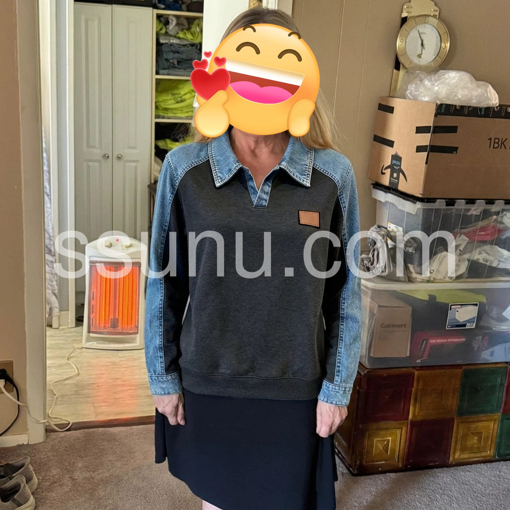 Elevate your denim collection with this striking color block long sleeve top. Crafted from quality denim, the contrasting panel design creates visual interest and modern appeal. The structured long sleeves offer versatility for layering or standalone wear, making it an essential piece for transitional seasons. Perfect for those who appreciate thoughtful design details and seek a standout addition to their everyday wardrobe. Style it with classic jeans for effortless sophistication or pair with neutral bottoms to let the color blocking take center stage.
