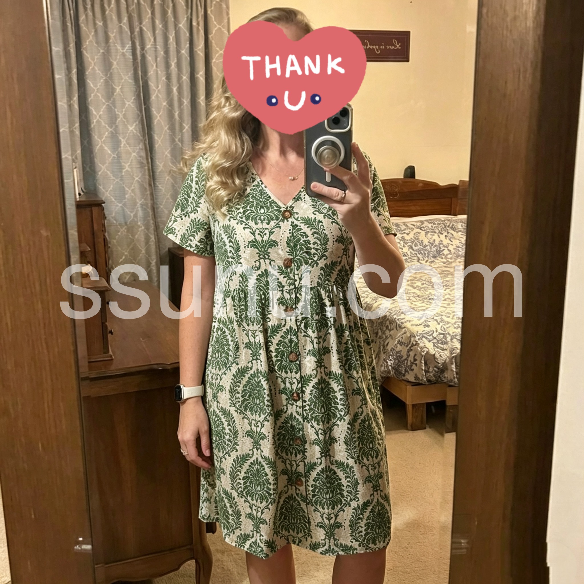 This dress is absolutely perfect for hot summer days. The fabric is light and breathable, and the green pattern is gorgeous. I wore it to a weekend brunch and felt so comfortable.