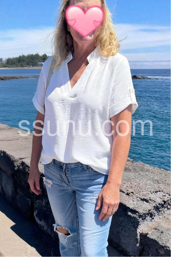 White Plain Half Sleeve Top