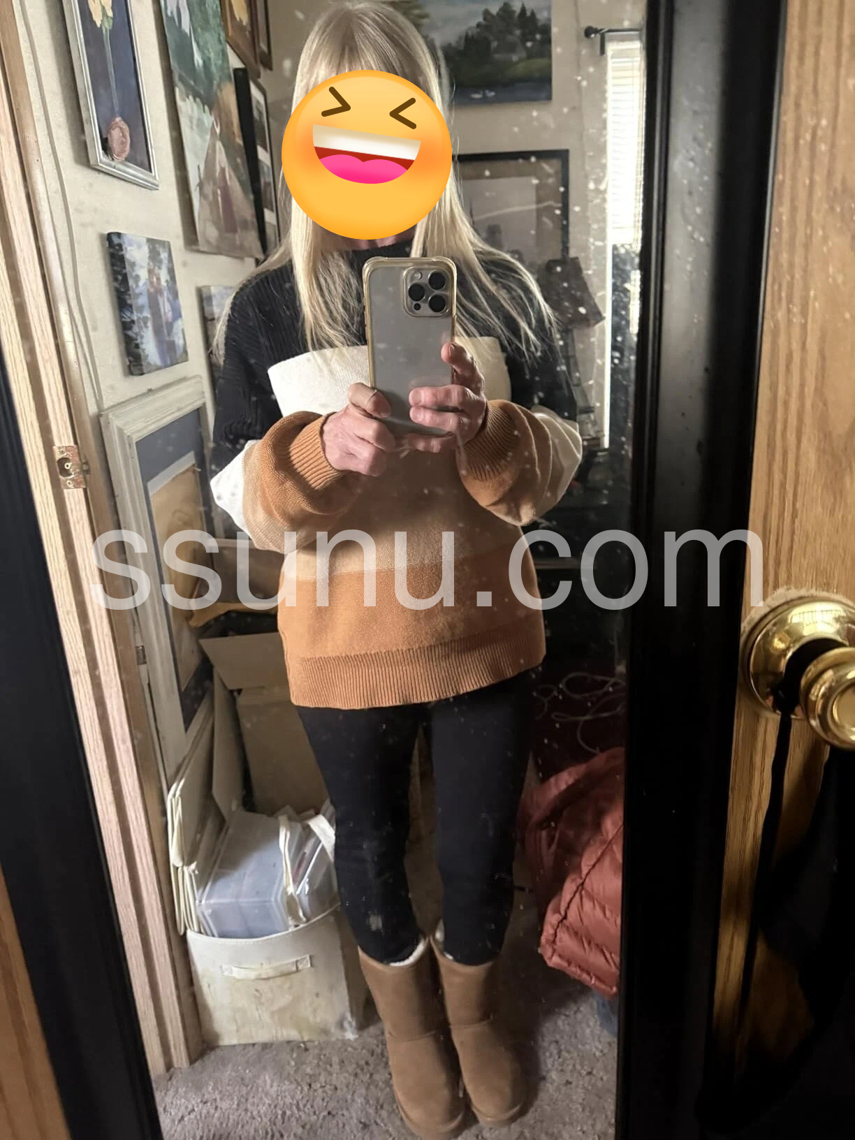 I love this sweater, the fit, the quality, and the color block gives so many more options. Looks great with jeans and also with leggings and boots. 5’1 115 lbs