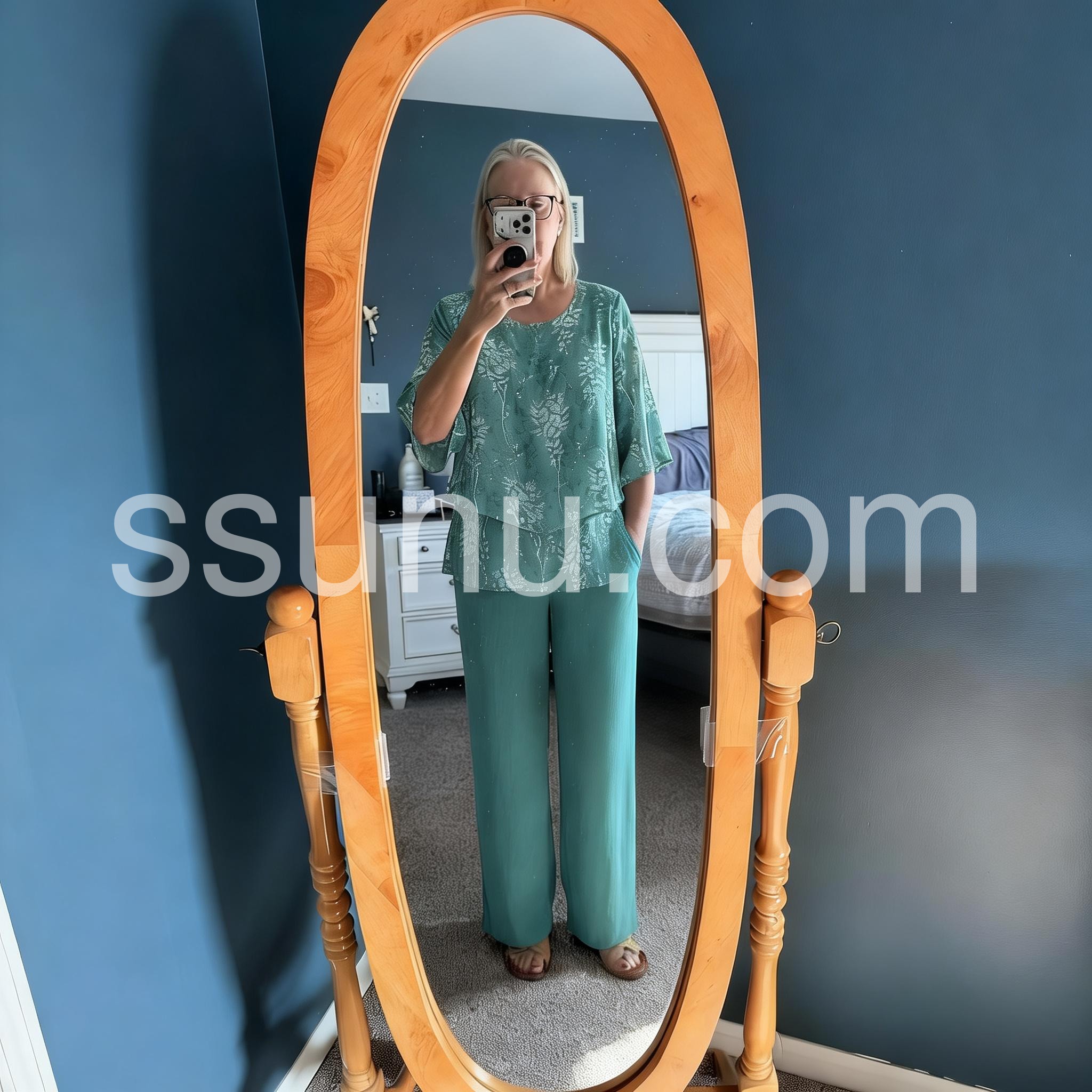 It is hard to find stylish, modest, and comfortable clothing but this set checks all the boxes. The floral pattern is delicate and the solid pants balance it perfectly. It is my new go to outfit for church and luncheons.
