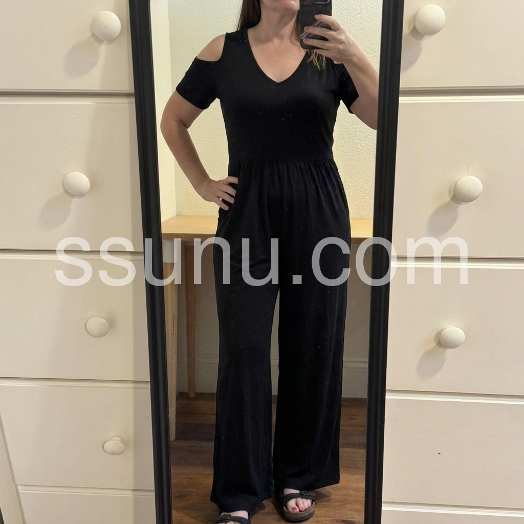 Style# 1260990This is the one-piece wonder that actually works. Our fit specialists spent months perfecting the **V-neck silhouette and tailored waist** to flatter real bodies—no guessing games, just curves in all the right places. The **55% rayon and 45% elastane blend** delivers that designer-grade drape you'd expect from luxury brands, sourced through our exclusive factory partnerships at a price that shouldn't exist. Throw it on for the office, dinner, or weekend errands. Machine washable and endlessly versatile, this jumpsuit proves that sometimes **less really is more**—and more is exactly what you're getting. As Coco Chanel would say, "Fashion is not something that exists in dresses only. Fashion is in the sky, in the street; fashion has to do with ideas, the way we live, what is happening." This piece captures that effortless philosophy. Fair warning: the clean lines and impeccable construction mean inventory moves fast. Once it's gone, it's gone—no restocks promised. Grab yours while you can.