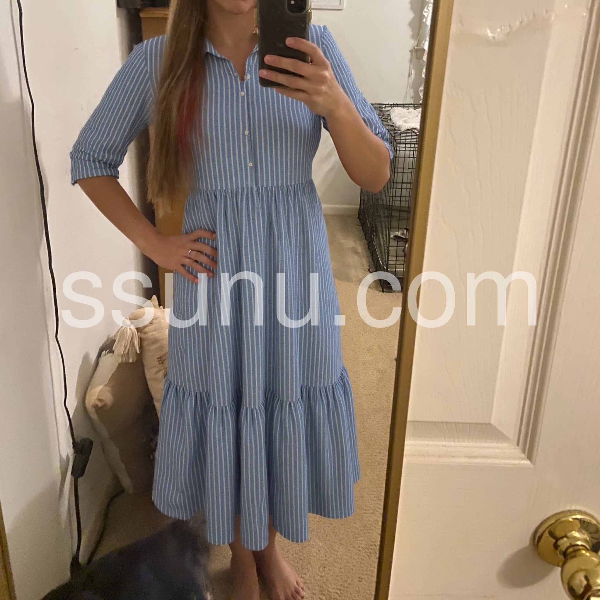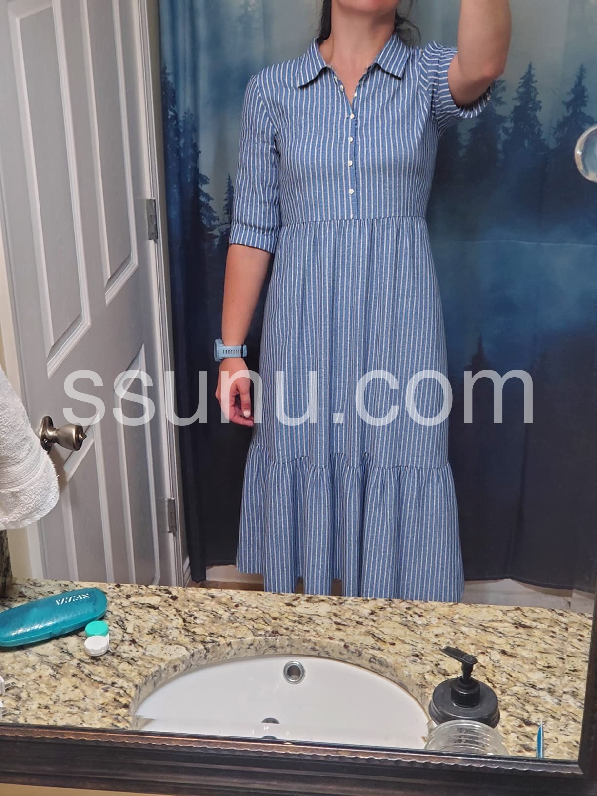 Breezy Striped Print 3/4 Sleeve Maxi Dress